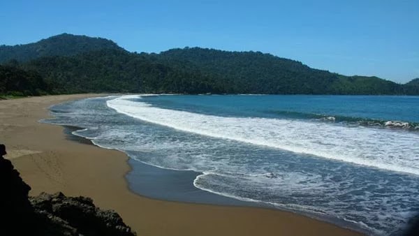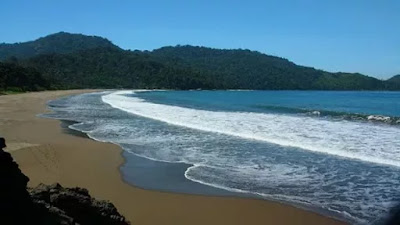 Sesampai di pantai ini Anda akan disambut hamparan pemandangan indah dengan deburan ombak yang menggulung membuat nyaman mata siapa saja yang memandangnya.