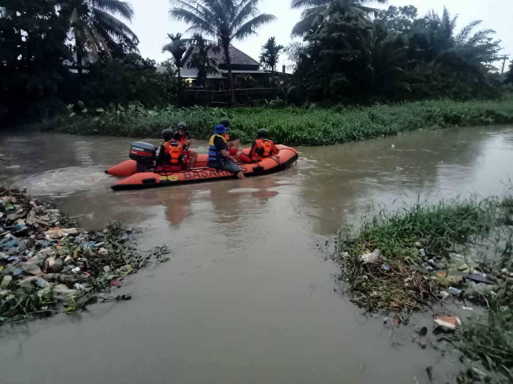 Menurut informasi, kejadian bermula saat bernama Hapsi (8) sedang berenang bersama temannya di aliran bendungan Sukajaya, kondisi cuaca pada saat kejadian sedang hujan deras berselang beberapa saat tiba-tiba korban hanyut terseret arus dan hilang.