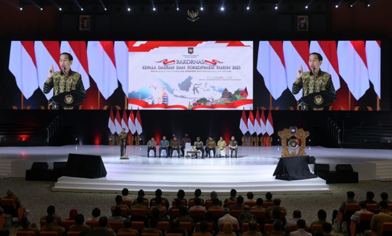 Soal Inflasi, Kepala Negara menekankan kepada seluruh Kepala Daerah untuk berhati-hati. Presiden menuturkan di tahun 2023, satu per tiga ekonomi di dunia diprediksi mengalami resesi.