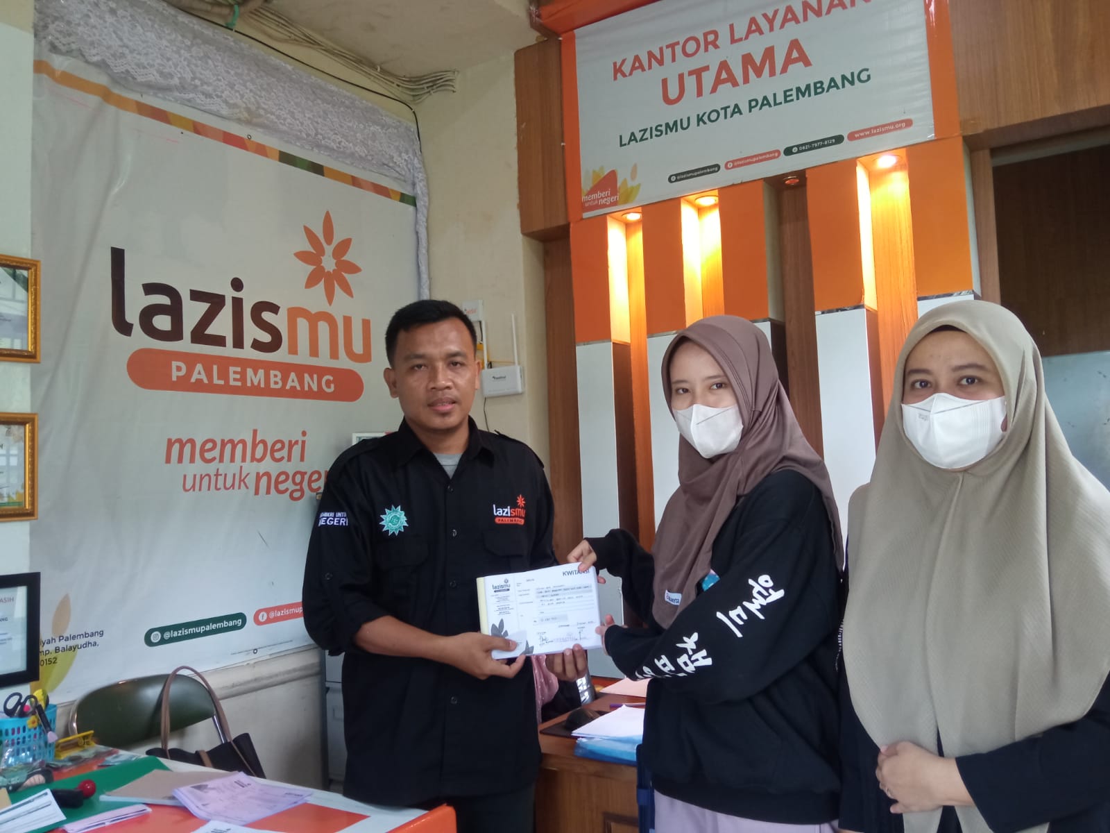 Penyerahan beasiswa Sang Surya kepada Rizka dilakukan secara simbolis dikantor Lazismu Palembang. Hadir dalam acara tersebut, Wakil Ketua Lazismu Palembang Andiwijaya, dan perwakilan dari Keluarga Rizka, kakak perempuanya.