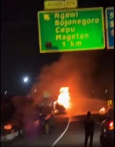 Jatim, Arungmedia.com,—– Kebakaran dasyhat menimpa truk tangki Pertamina di lajur dekat exit Tol Ngawi, Jawa Timur, Selasa malam (25/6/2024).