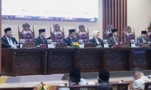 Dewan Perwakilan Rakyat Daerah (DPRD) Provinsi Sumatera Selatan mendengarkan jawaban Gubernur atas pandangan umum Fraksi-fraksi pada Rapat Paripurna LXXXIV (84) DPRD Prov. Sumsel dengan agenda tanggapan dan atau jawaban Gubernur terhadap Pandangan umum Fraksi-fraksi terhadap Rancangan Peraturan Daerah (Raperda) Pertanggungjawaban Pelaksanaan Anggaran Pendapatan dan Belanja Daerah (APBD) Provinsi Sumatera Selatan Tahun Anggaran (TA) 2023 dipimpin oleh H. Muchendi Mahzareki, SE, M.Si dihadiri oleh Pj. Gubernur Sumsel; yang diwakili oleh Sekretaris Daerah; Ir. S.A. Supriono, Para Perwakilan OPD serta tamu undangan lain di Ruang Rapat Paripurna DPRD Prov.Sumsel hari ini (Kamis,6/6).