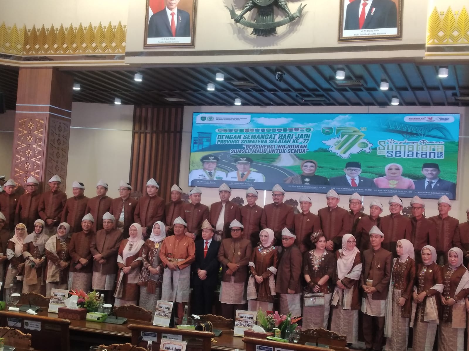 Palembang, Arungmedia.com–Rapat paripurna istimewa DPRD dengan agenda peringatan hari jadi Provinsi Sumsel ke 77 dibuka oleh Ketua DPRD Provinsi Sumsel, Hj. RA. Anita Noeringhati, SH, MH. Turut hadir Gubernur Sumsel H Herman Deru, Wakil Gubernur, H Mawardi Yahya dan seluruh kepala daerah Bupati, walikota se Sumsel.