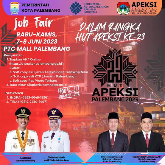Sementara itu, pelaksanaan job fair 2023 ini dalam rangka juga syukuran atau HUT Apeksi ke-23 di Kota Palembang.