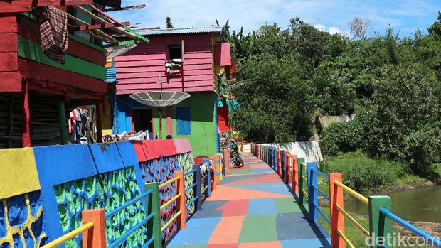 Kampung ini memiliki magnet dengan warna warni hingga lukisan di dinding-dinding rumah yang membuat wisatawan betah berswafoto.