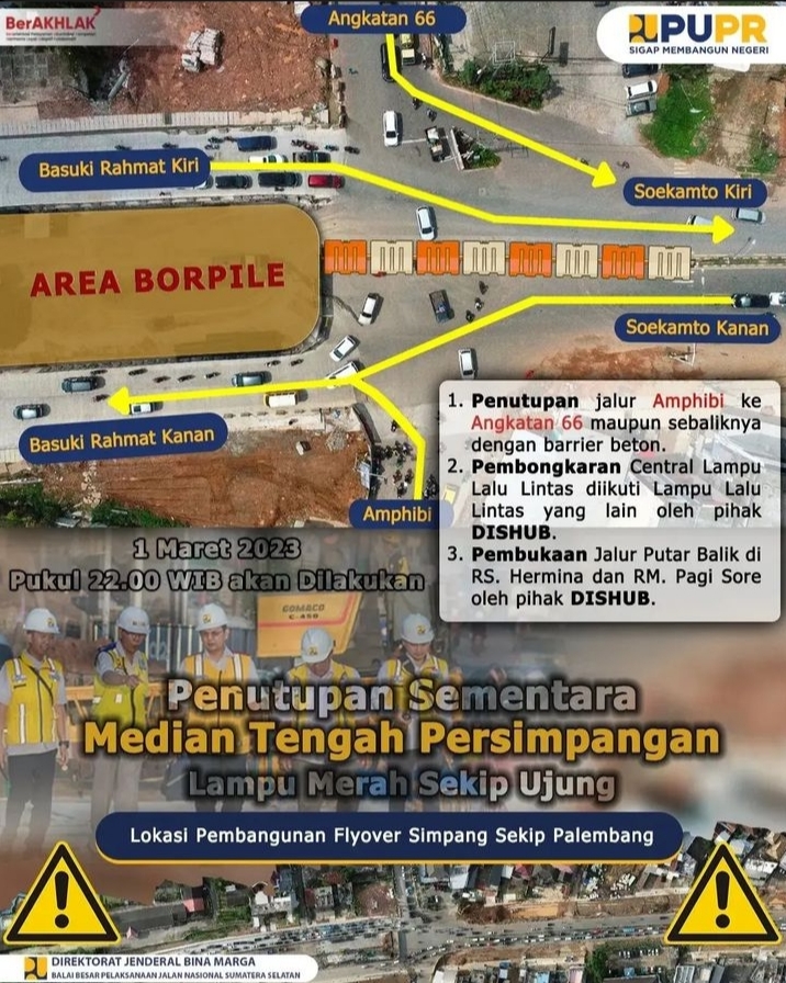 Malam ini Simpang Angkatan 66 Sekip Ujung Palembang Ditutup, ini Pengalihan Jalurnya