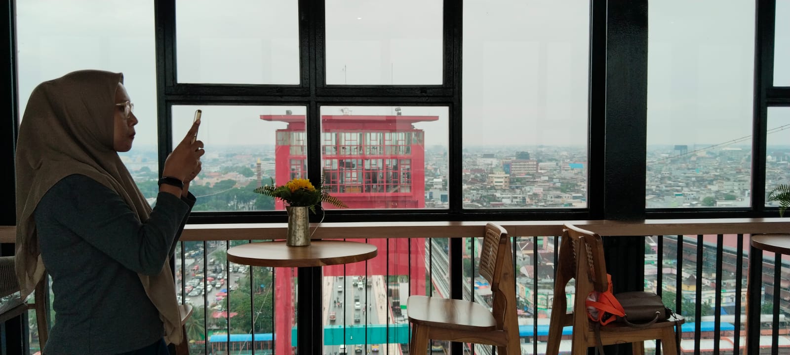 Di atas tower, dengan duduk di atas kursi yang nyaman yang telah disiapkan menghadap ke sisi timur dan barat jembatan, pengunjung akan mengagumi kekokohan Jembatan Ampera, setiap sudut Kota Palembang dengan kepadatan mobilisasinya, LRT, juga Sungai Musi dengan segala kesibukannya.