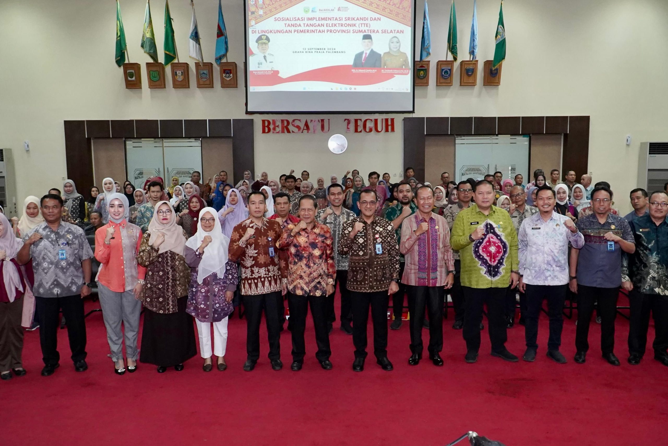 Palembang, Arumgmedia.com, —Sekretaris Daerah (Sekda) Provinsi Sumatera Selatan (Sumsel) Drs H Edward Candra MH, secara resmi membuka Sosialisasi Implementasi aplikasi Srikandi dan Tanda Tangan Elektrik (TTE) di Lingkungan Pemerintah Provinsi Sumsel, bertempat di Auditorium Bina Praja Pemprov Sumsel, Kamis (12/9/2024).
