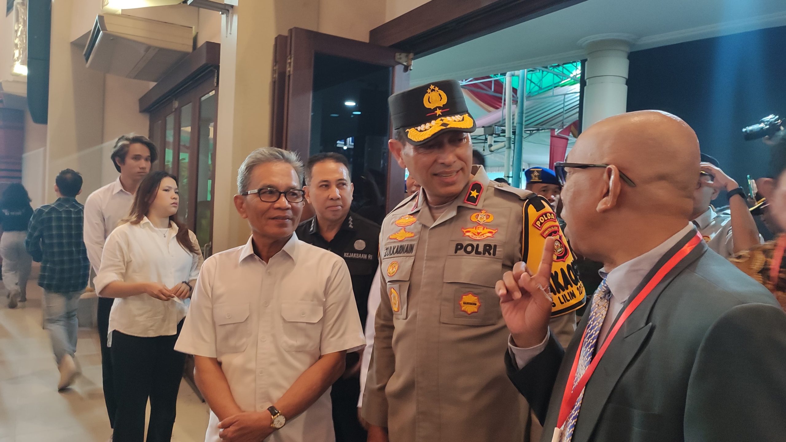 Kedatangan Kapolda Sumsel Irjen Pol Albertus Rachmad Wibowo tampak langsung disambut hangat oleh Romo Gereja Katolik Paroki St. Yoseph.