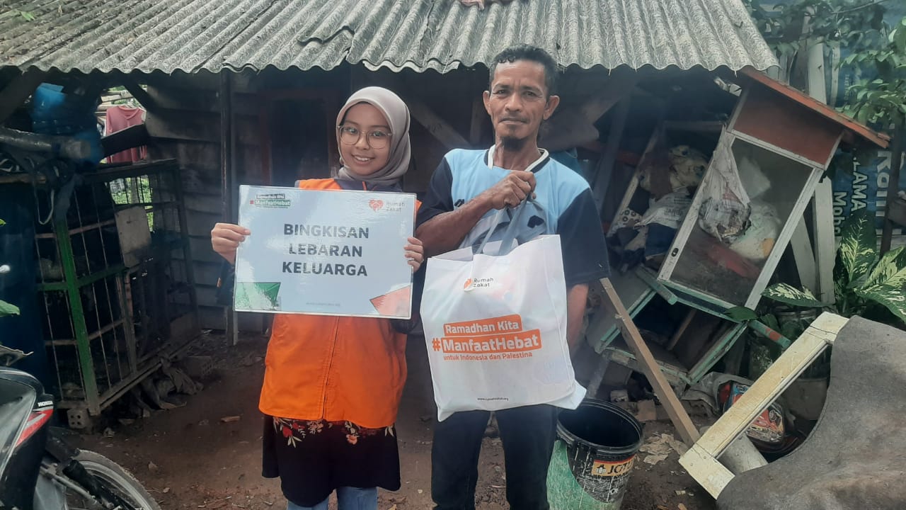 Hari ini Rabu (13/03) Rumah Zakat menyalurkan paket bingkisan lebaran keluarga, slah satu penerima paket Asep Udayasa (47), Ia biasa di sapa pak elang salah satu warga Sukarami Kota Palembang yang terkena dampak kenaikan harga bahan pokok, bekerja sebagai buruh kuli bangunan kadang tidak mencukupi kebutuhan ekonomi keluarga.