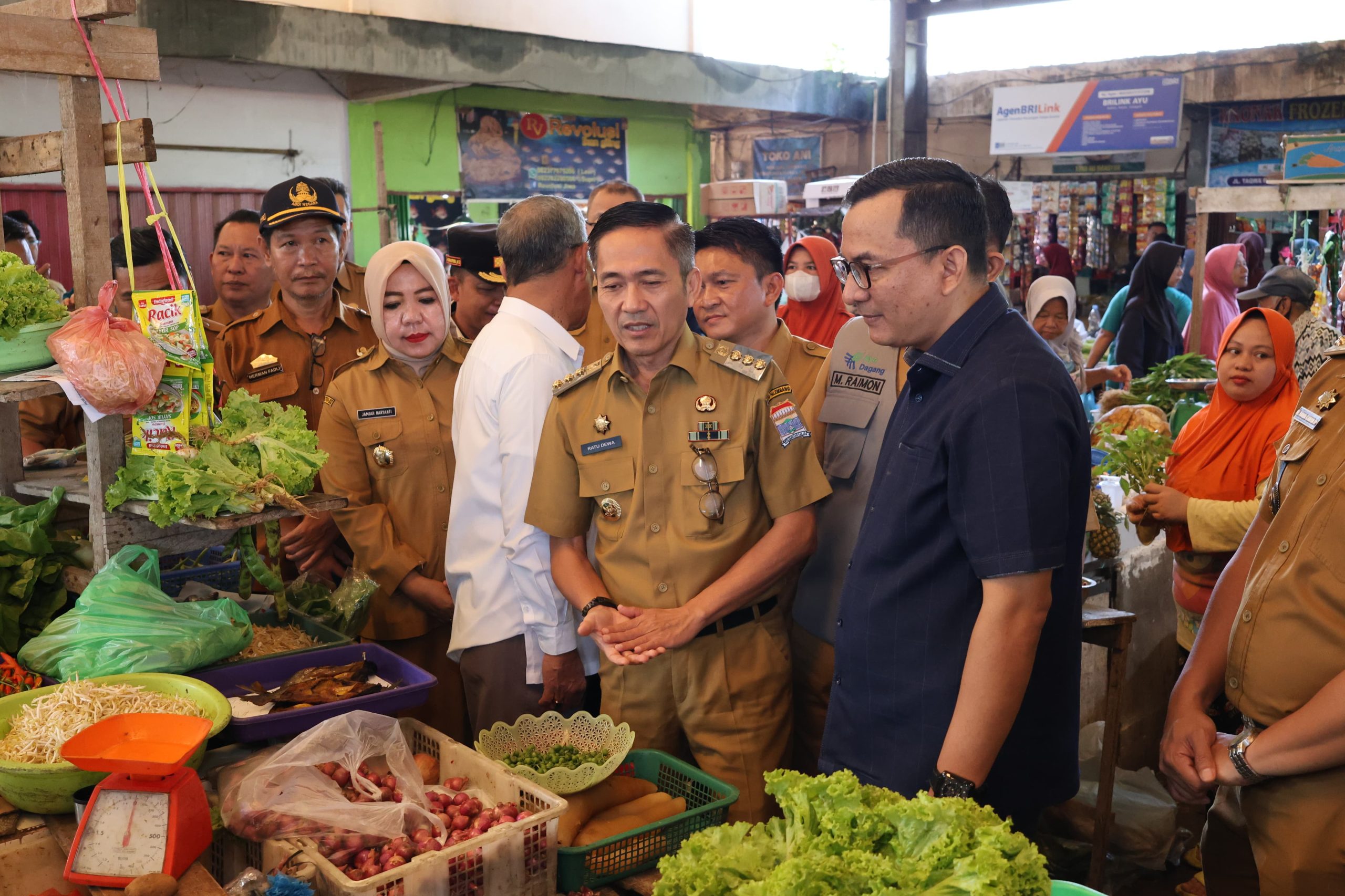 Setibanya di pasar tradisional itu, Ratu Dewa bersama jajaran langsung berkeliling memantau harga-harga kebutuhan pokok.