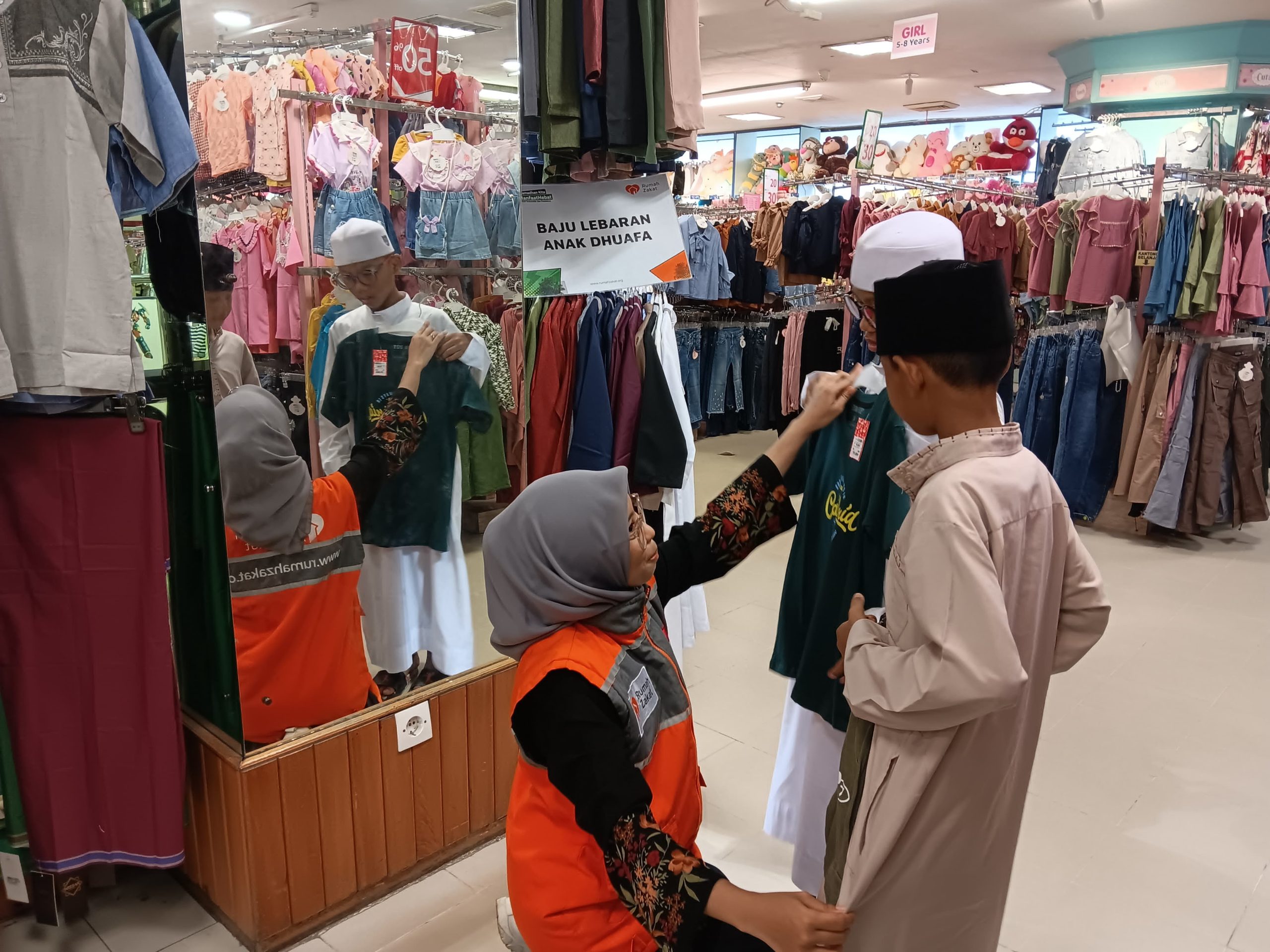 Palembang,Arungmedia.com —– Senyum bahagia tidak dapat disembunyikan Tegar dan Zahra saat diajak tim Rumah Zakat berbelanja baju lebaran di salah satu pusat berbelanja Kota Palembang, selasa (26/3/24).