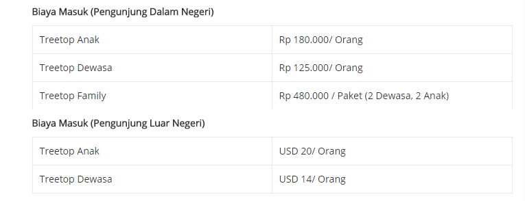 Dan inillah tarif yang anda harus bayar untuk masuk ke bandung treetop :
