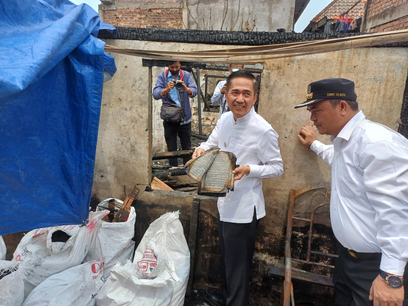 Diantara puing bangunan itu, dalam tinjauannya PJ Walikota Palembang Ratu Dewa menemukan Alquran yang kondisinya masih bagus, isinya masih lengkap hanya saja pinggiran kulitnya yang terbakar.