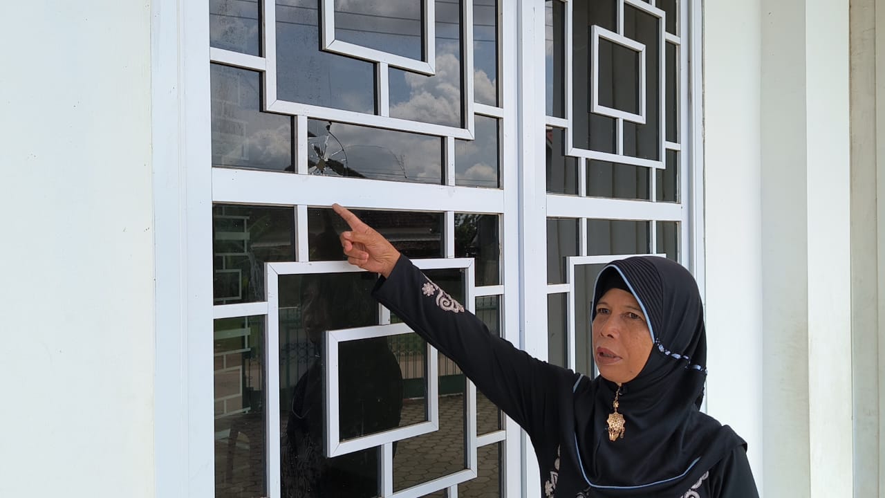 Dirinya menjelaskan saat itu ia baru saja mengajar ngaji di masjid tersebut. Namun, kata dia, terdapat satu anak yang berdiri tidak jauh dari kaca jendela yang berlubang tersebut saat kejadian.