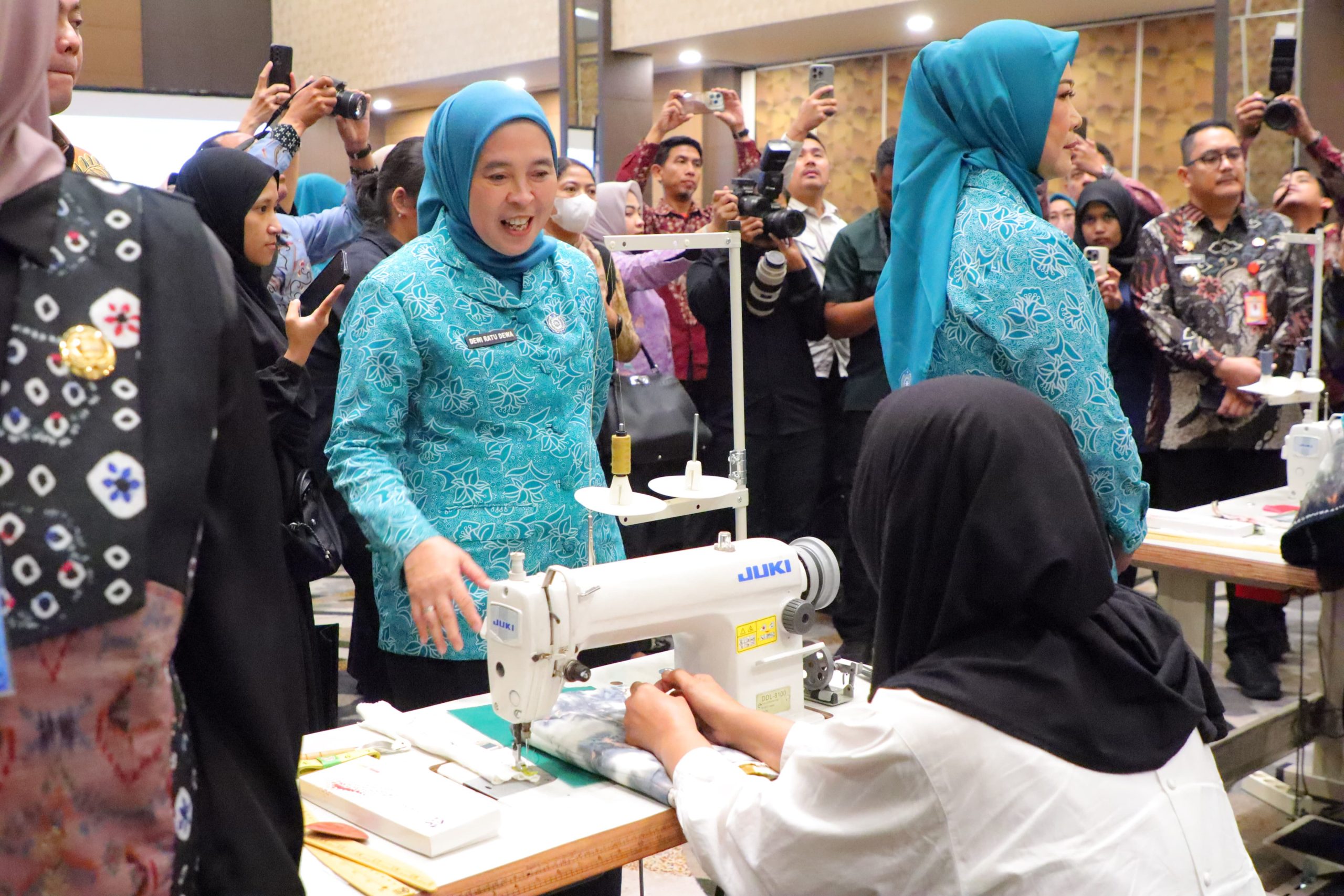 Kegiatan yang bertujuan untuk meningkatkan keterampilan para ibu rumah tangga sekaligus membuka peluang usaha mandiri di bidang konveksi dan fashion rumahan, Ketum TP PKK Tri Tito Carnavian langsung didampingi Ketua TP PKK Provinsi Sumatera Selatan (Sumsel) Hj. Feby Herman Deru dan Ketua TP PKK Palembang Dewi Sastrani Ratu Dewa.